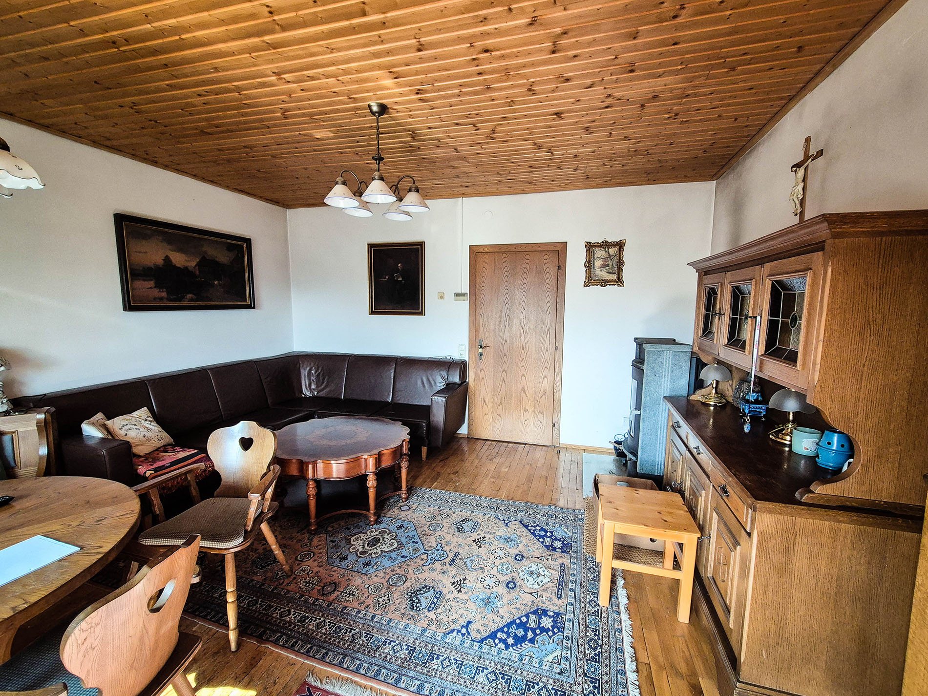 Die Raumaufteilung umfasst Vorraum, Badezimmer/WC, Küche, Wohnzimmer, Schlafzimmer 1 und Schlafzimmer 2 sowie zwei sonnige Balkone. Zusätzlich stehen ein Abstellraum und ein eigener Parkplatz zur Verfügung. Eine Holzlage für´s Brennholz rundet das Angebot ab.